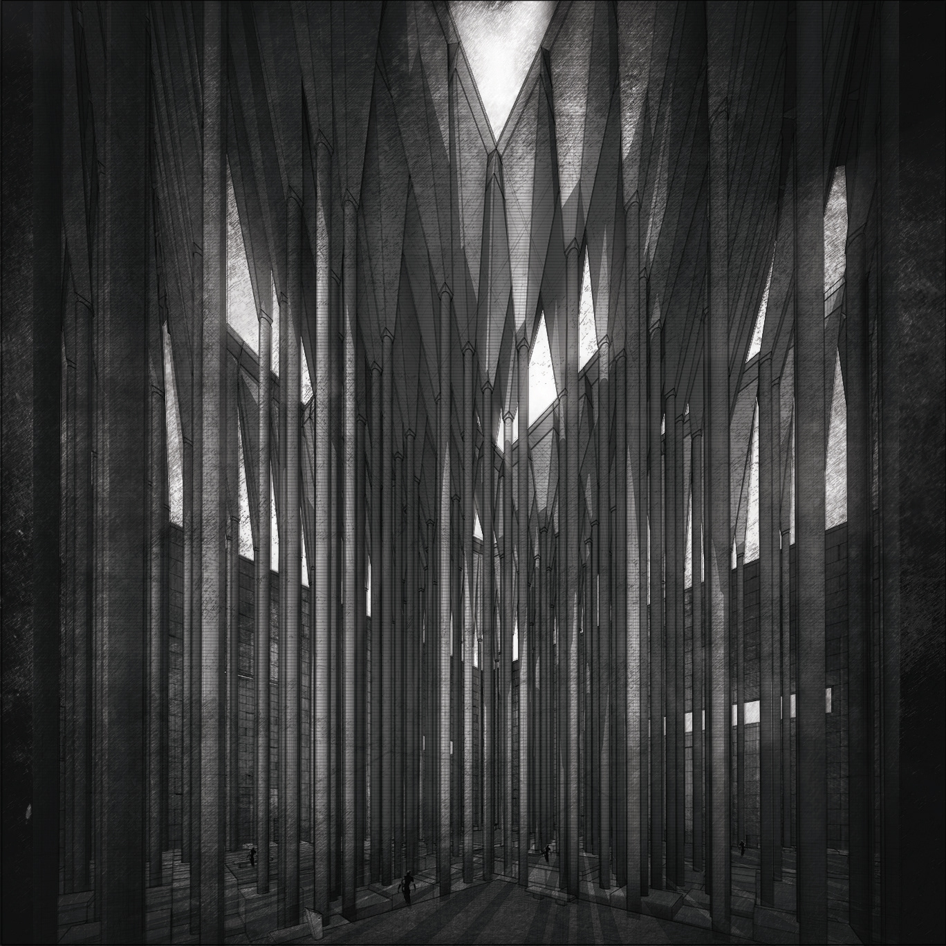 Utilizing the techniques of Hugh Ferriss allowed me to demonstrate the relation of surface, light, and shadow.